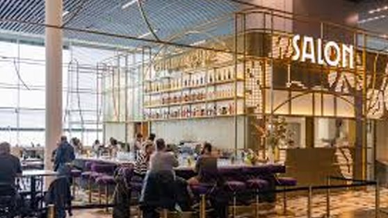 Welkom op Schiphol, Lounge 1, bij Salon, geïnspireerd door de grachten en terrassen van Amsterdam. Het Grand Café en Deli bieden een authentiek Amsterdams gevoel met diverse gerechten. Het Grand Café serveert de Eberhardjes en de Salon verkoopt de pakketjes. Handig als je nog even snel een cadeautje mee wilt nemen naar het buitenland.