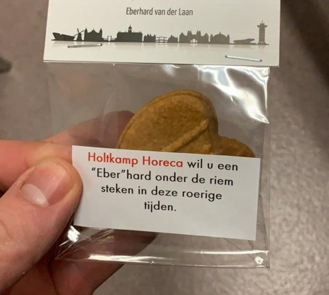 Na de persconferentie met de eerste strenge overheidsmaatregelen in het kader van COVID-19 zijn de directe gevolgen voor de horeca in Amsterdam sterk voelbaar. Holtkamp Horeca Patisserie en Croquetten en de Eberhardjes steken al onze afnemers, vrienden en andere relaties in deze onrustige tijden een ‘Eber-hard’ onder de riem.