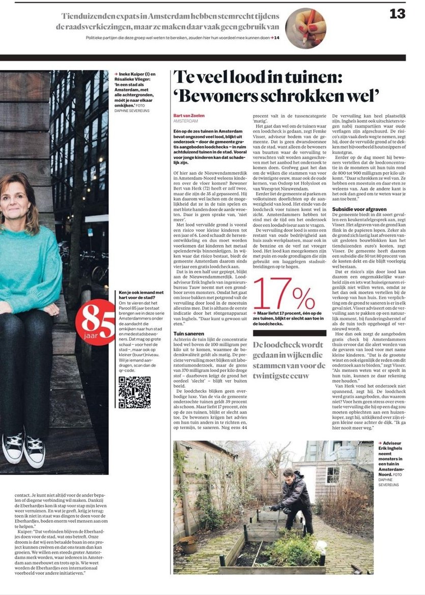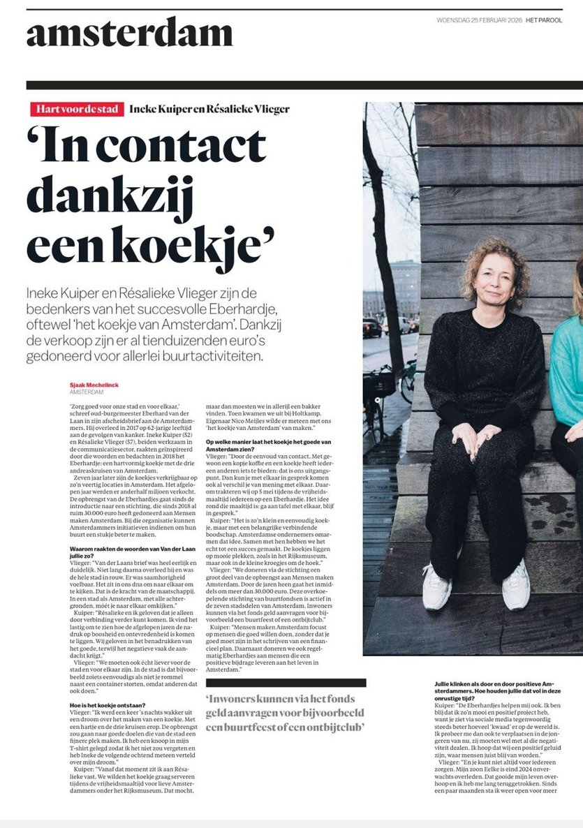 Op 10 februari 2026 bestaat Het Parool 85 jaar. Om dat te vieren maken zij sinds dat moment portretten van Amsterdammers die Amsterdam mooier maken. Wij werden gevraagd voor deelname en stonden daarom op 24 februari met gepaste trots in het Parool! Lees hier hoe je ook anderen kunt opgeven voor deze rubriek!