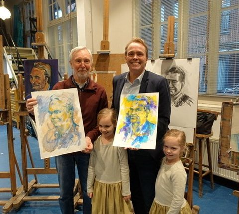 Als vaste sponsor van Portret op Zondag van De Zondagsschilders waren we met de Eberhardjes ook weer aanwezig bij het portretteren van Alex Dekker, portefeuille-manager Verkoop & Commercieel Vastgoed van de gemeente Amsterdam. De Zondagsschilders bedankten hiermee Alex Dekker voor zijn inzet voor het realiseren van een nieuwe locatie in de Rozenstraat.